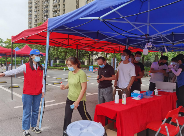 事实上,志愿者阿川的经历只是金世豪鼎力支援宏盈工业园区全民核酸检测大筛查行动的一个缩影。同心抗疫,爱心接力,连日来,金世豪党员、团干、志愿者们闻讯而动,踊跃参与到疫情防控工作之中,采取执勤轮换的方式全力保障入口扫码信息登记、健康码核验、体温检测、流程引导、信息录入、核酸采样等各个环节正常运行,为抗疫一线工作人员构筑起坚实“后盾”,解决他们的后顾之忧。